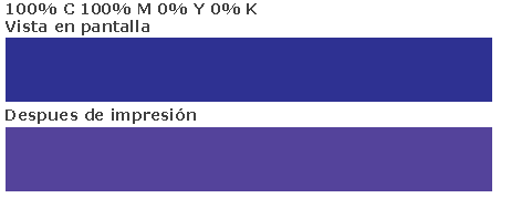 Si se utiliza un color azul en su diseño, siempre asegúrese de dejar al menos un 30% de diferencia en sus valores de cyan y magenta.