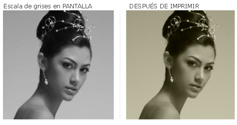 Escala de grises en PANTALLA DESPUÉS DE IMPRIMIR