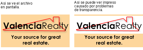 En este caso se estableció el logotipo de sobreimpresión. Los colores del logotipo se mezcla con los colores del fondo. Pueden producirse resultados inesperados si tiene establecido accidentalmente a ciertos objetos orden de sobreimpresión. Compruebe siempre todos los elementos del arte antes del envio a impresión.